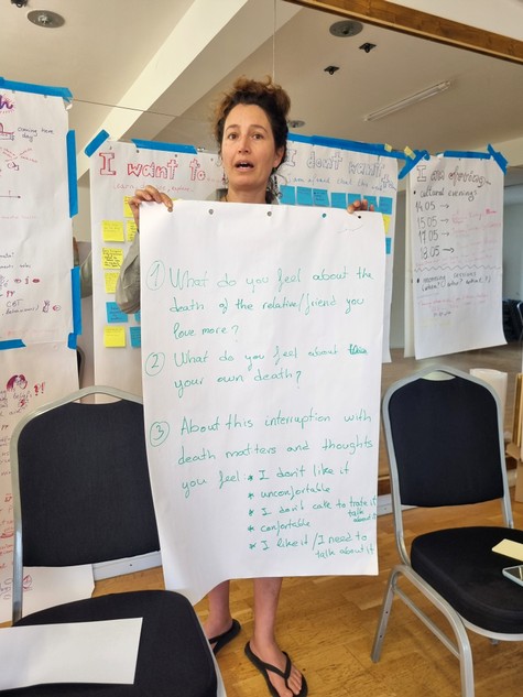 El Death Café es un espacio de confianza en el que no más de 15 personas comparten si quieren, o al menos sienten la expresión de los demás, que sin ser un espacio de terapia, ayuda mucho a aligerar la carga que nos produce, ya no la muerte de un ser querido, si no, el estar preparados o no, para nuestra propia muerte.